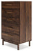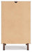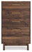At the intersection of industrial cool and chic sophistication, you’ll find this chest of drawers. With a rich brown finish over replicated walnut wood grain, paired with burnished goldtone handles, it offers an authentic touch that plays well any way you style it. Simple and elegant in its design, this piece keeps your home decor grounded while elevating your modern style.